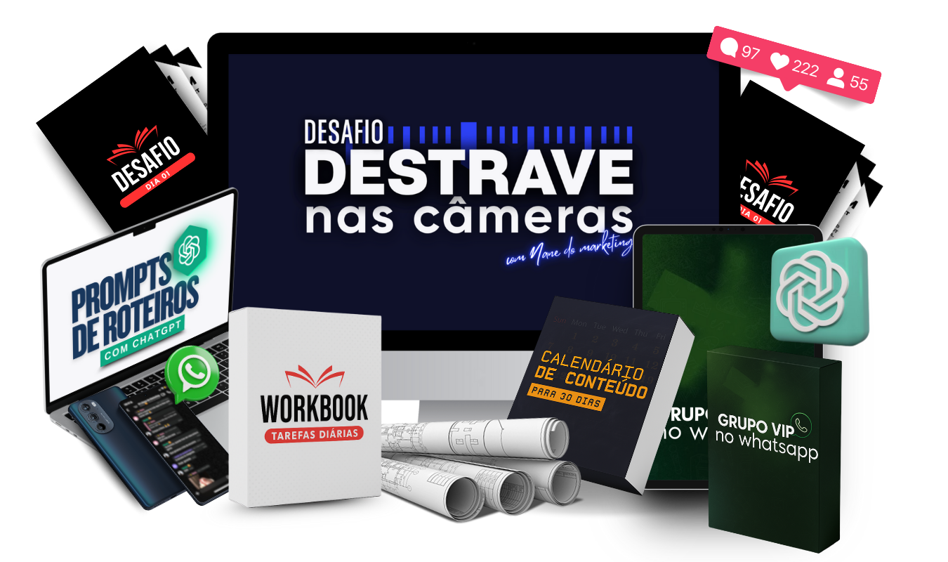 Criadora do Desafio Destrave nas Câmeras, ela desenvolveu um método simples e prático para ajudar empreendedores e autônomos a superarem o medo de gravar vídeos e transformarem sua presença digital — com leveza, clareza e autenticidade.